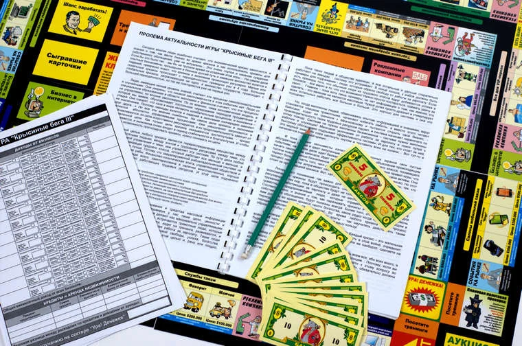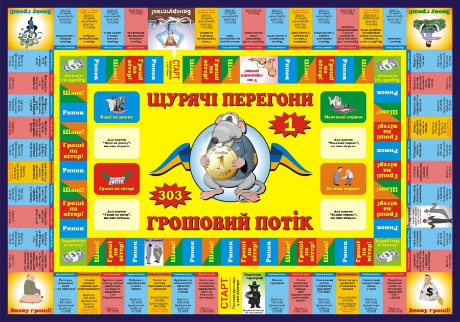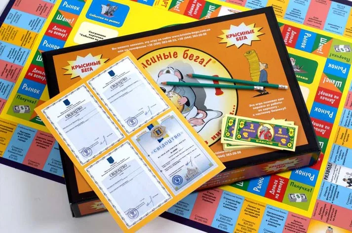Заголом ідея зрозуміла... Але як це зроботи??? Цьому вчить інша гра – Rat Race! У перекладі українською мовою - "щурячі перегони". Але звідки у солідних бізнес-ігор така дивна назва? До чого тут щури? Виявляється, - звідти ж: із книг Роберта Кійосакі!
