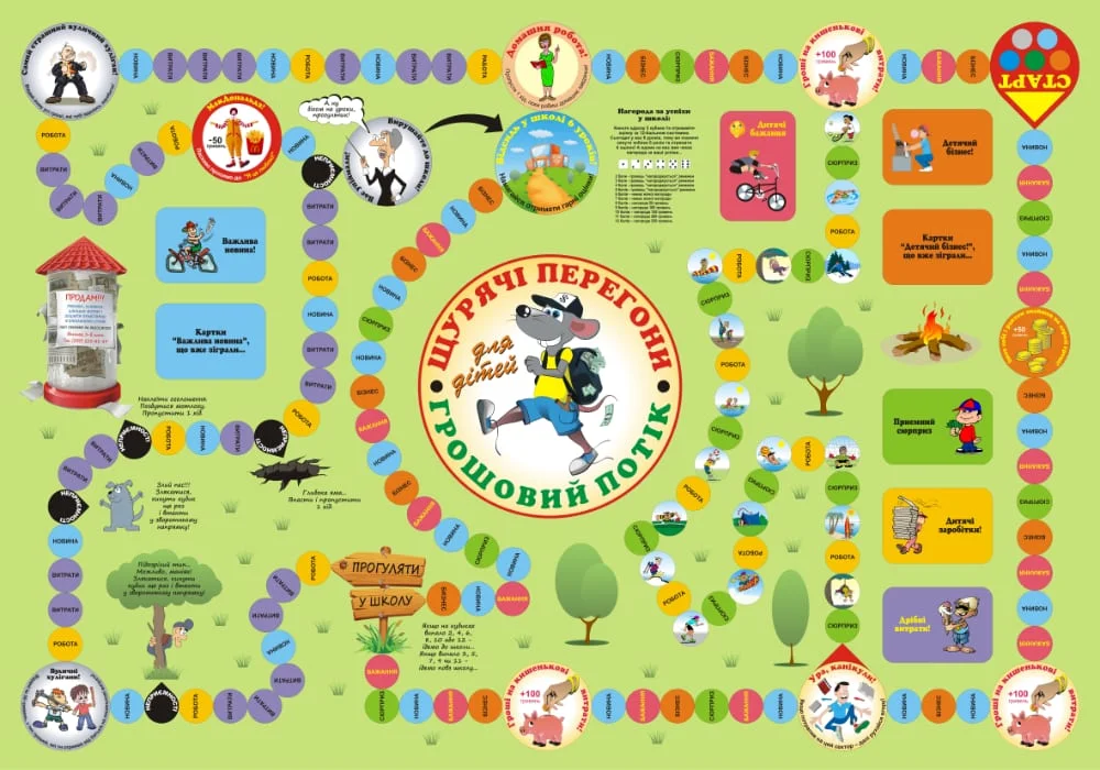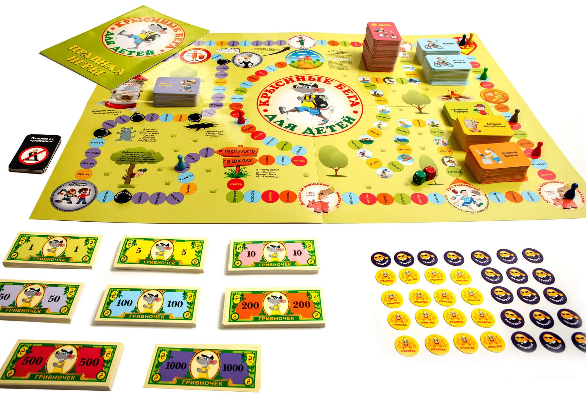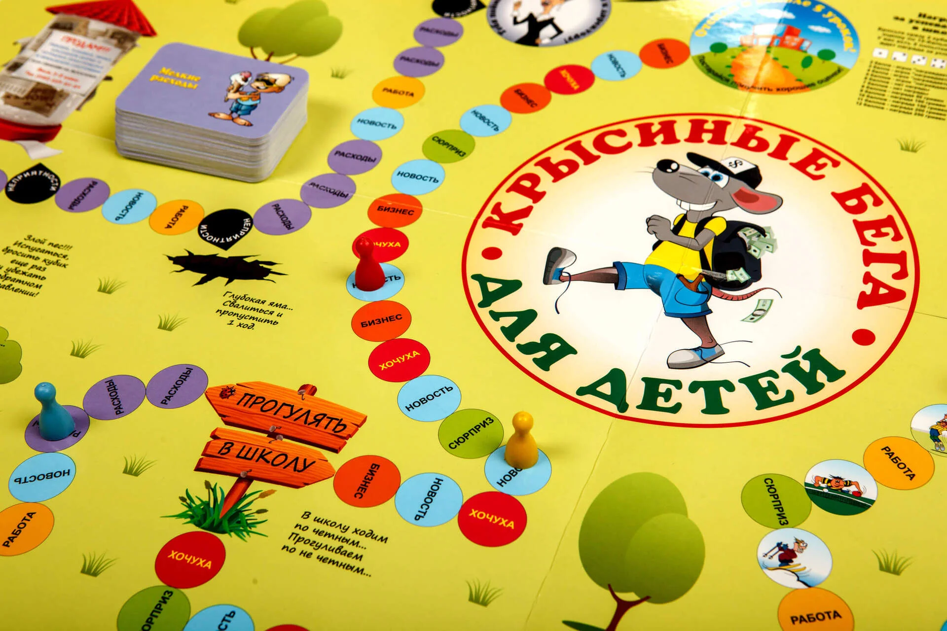 Було б не пробачливо, якби ми не згадали про гру "Крысиные бега для детей"! Єдине, що важливо – це памятати, що таких ігор на російському та українському ринку зустрічається дві. Перша гра - це "Денежный поток для детей", яка продавалася років 10-15 тому і була просто перекладом американської гри Cashflow for Kids. По суті, це була спрощена до дитячого розуміння гра Cashflow 101, створена Робертом Кійосакі. Але ця гра не знайшла у дітей такого бурхливого відгуку, як, наприклад, стара добра гра "Монополія". Вона виявилася для дітей надто нудною та сухою, бо дітям не цікаво заробляти гроші та не цікаво грамотно ними розпоряджатися. Дітям цікаво гратися та весело проводити свій час. На жаль, цього Cashflow for Kids дітям не пропонувала. Тож незабаром вона перестала видаватися. Однак її все ще можна зустріти у продажу, так би мовити "зі старих запасів". Тож дивіться не переплутайте! Ваша дитина цього вам не пробачить...