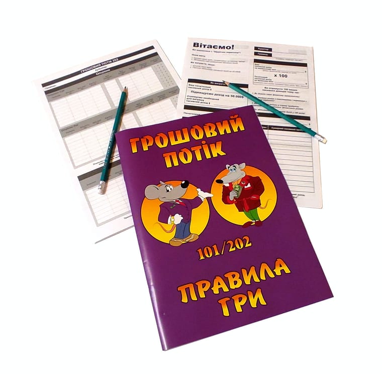 Гра "Грошовий потік 101+202" - це дві відомі гри Роберта Кійосакі "Cashflow 101" та "Cashflow 202", що були перекладені українською мовою, та поєднані у одній великій коробці. Оскільки деякі складові цих ігор співпадають, для здешевлення вашої покупки вони будуть присутні у коробці в одному екземплярі. І дійсно: ну навіщо вам два однакових ігрових поля? Або навіщо вам два однакових комплекта ігрових грошей, якщо обидві гри використовують одне й те ж саме поле, одні й ті ж самі гроші? Так саме з ігровими кубиками, фішками, олівцями та гумками.