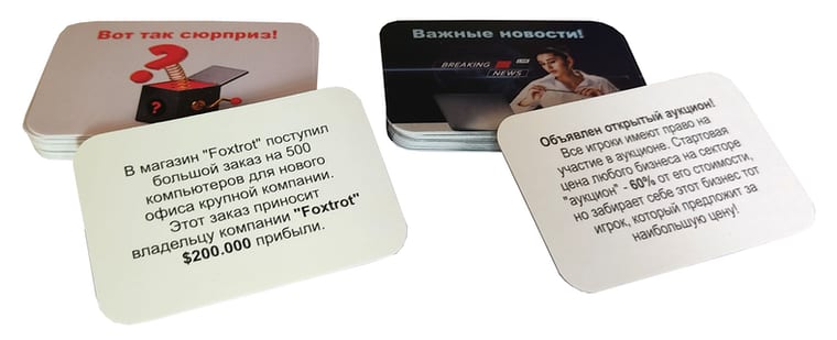 І тут у грі настає криза... Цією подією керує одна єдина картка, яка є у наборі "Події на ринку". Ніхто з гравців не знає, коли вона зіграє. На початку, у середині чи наприкінці гри. Але, як тільки хтось із гравців витяг її, - економічна атмосфера гри повністю змінюється. Змінюються набори ігрових карток, змінюються ігрові умови. Картки "Події на ринку", що несуть в основному радісні та позитивні новини, змінюються на картки "Неприємності на ринку", які не несуть гравцям нічого доброго. Тут на гравців чекають новини - одна гірша за іншу. Рентабельність усіх бізнесів різко знижується. При цьому одні бізнеси приносять набагато менше прибутку, ніж приносили до кризи, інші - взагалі перестають приносити якийсь прибуток, а є й такі бізнеси, які стають збитковими! Тому балансові листи гравців перераховуються згідно з новим рівнем доходів, які приносять їхні бізнеси за умов кризи. При цьому багато гравців можуть зіткнутися з тим, що їхнє підсумкове сальдо стало від`ємним, тобто збитковим. І вони навіть не можуть нікому продати свої збиткові бізнеси, оскільки всі навколо знаходяться приблизно в такому ж становищі. Ні в кого немає грошей, а ті, у кого вони є, не купуватимуть збитковий бізнес - вони просто почекають, поки гравець остаточно збанкрутує, щоб забрати потім за безцінь усі його активи.