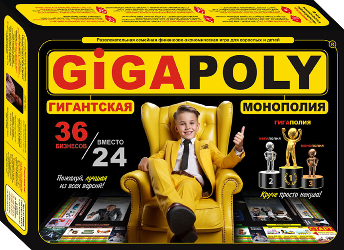 "Гігаполія" - це найсучасніша і найцікавіша версія гри "Монополія"! Мабуть, найкраща з усіх версій, створених за її мотивами, свого роду "вершина еволюції" цієї гри! За своїми правилами вона так ж проста, як і "Монополія", тому її з легкістю опанують навіть діти! А за своїм змістом вона настільки сучасна та захоплююча, що нею зацікавляться навіть дорослі! Таким чином, "Гігаполія" - це справжня "сімейна гра", яка легко може зібрати за одним ігровим столом і дітей, і їхніх батьків, і подарувати їм море задоволення та незабутні спогади! І, до речі, ще не відомо, хто в кого виграє!